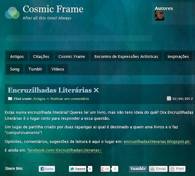 Da parte do Encruzilhadas um desejo de boas leituras e uma boa semana!
